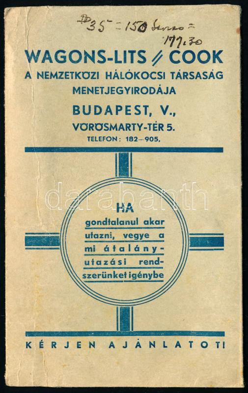 Wagons-Lits Cook Nemzetközi Hálókocsi Társaság Menetjegyirodája jegyta... https://www.darabanth.com/hu/442-Gyorsarveres/442.0/Mutargy-papirregiseg-egyeb/Reklam~500026/Wagons-Lits-Cook-Nemzetkozi-Halokocsi-Tarsasag-Menetjegyirodaja-jegytarto-tasak~II2911471