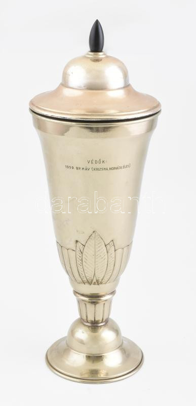 Autómodellezés - Budapest, 1959. MHS. BP-i Autómodell Bajnokság Csapatverseny vándordíja (Védők: 1959. BP. MÁV (Krizsma, Horváth, Éles) Ezüstözött fém serleg gravírozott felirattal.