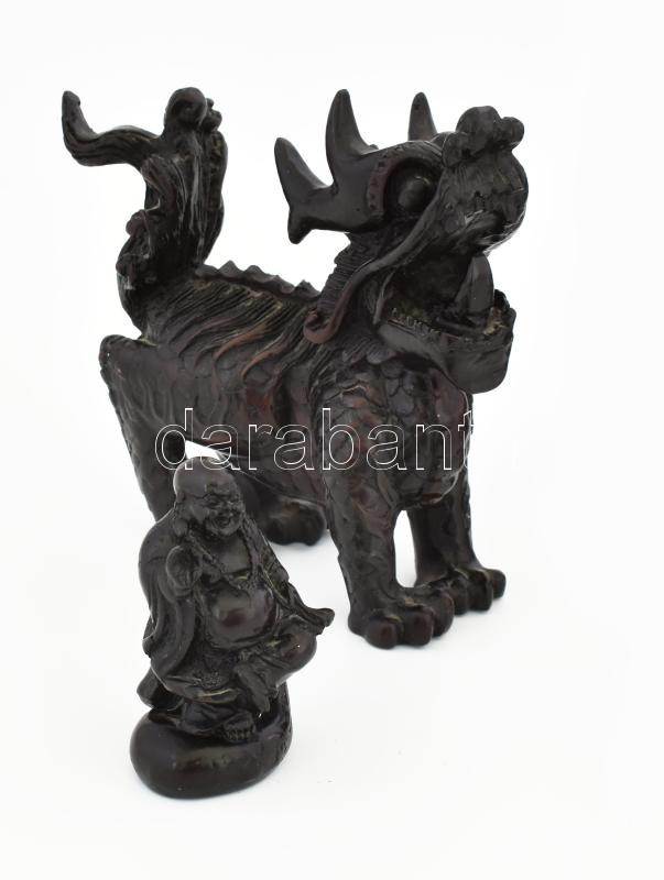 Leírás: 5 darab távol-keleti szobor, fa, bakelit, szép állapotban, jelzés nélkül, m: 7-19 cm