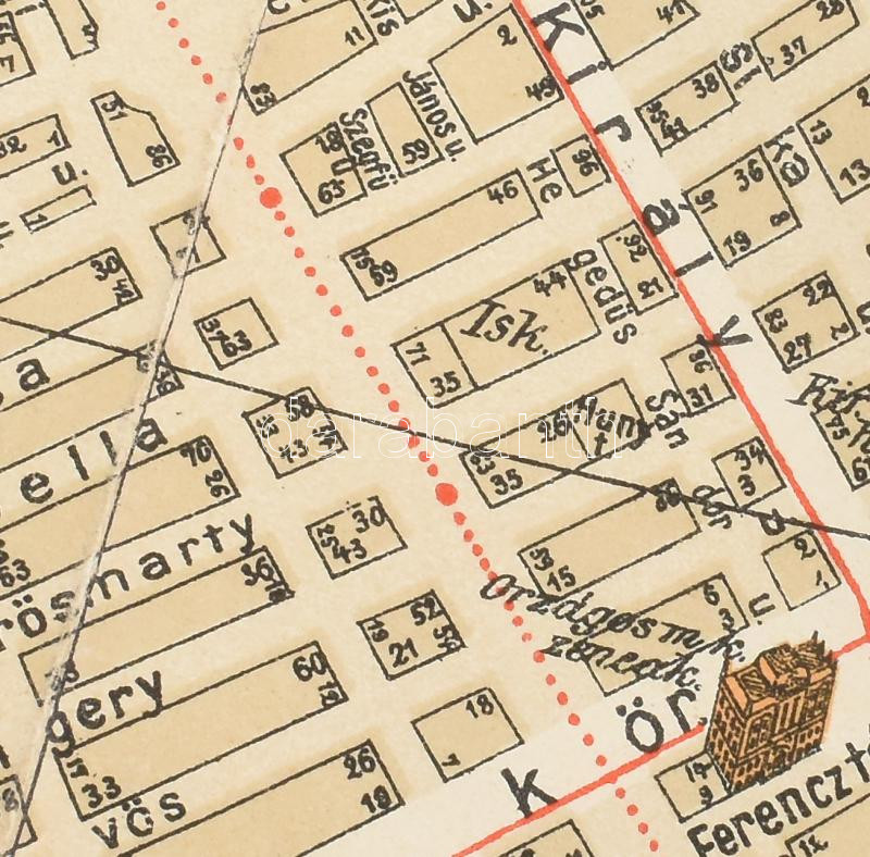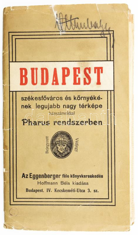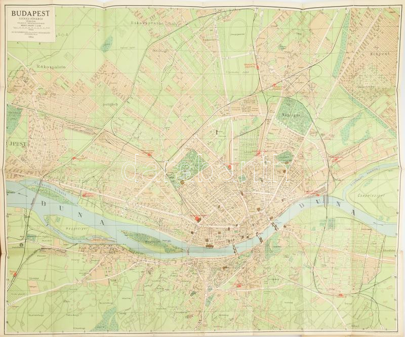 1912 Budapest székesfőváros és környékének legújabb nagy térképe házszámokkal Pharus rendszerben, 95×80 cm Utcajegyzékkel, hátul néhol papírragasztóval megerősítve