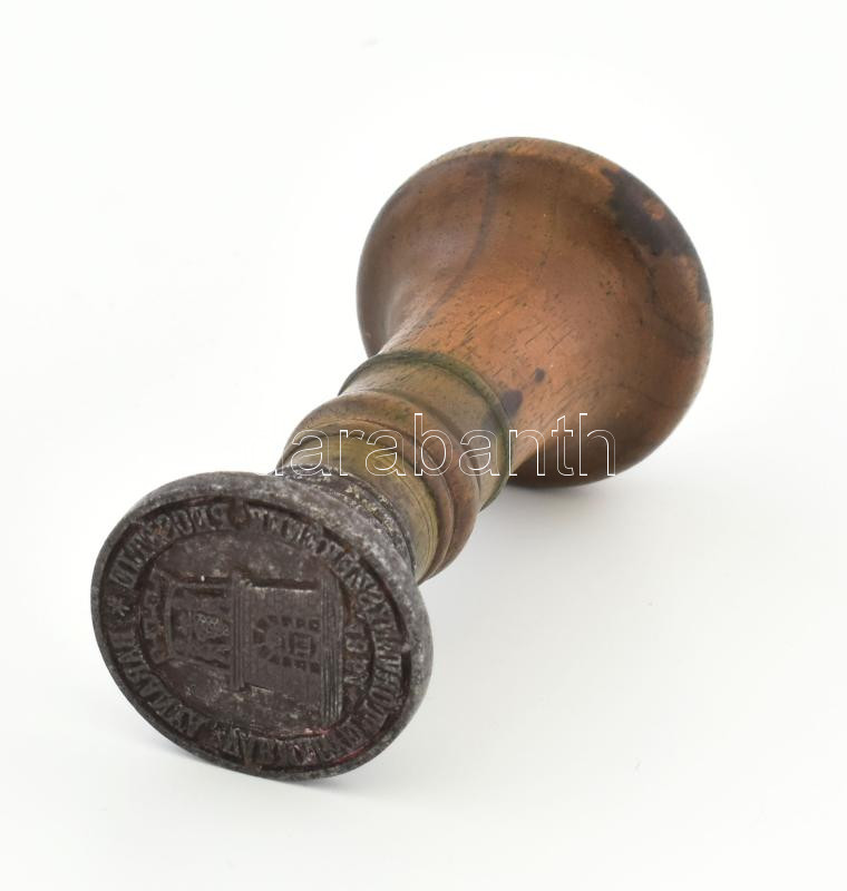 Leírás: "Baranya Vármegye Törvényszéke 1861", pecsét, rajta a vármegye címerével, fém-fa, m: 10 cm