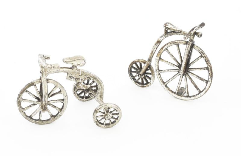 Leírás: 2 darab ezüst (Ag) bicikli miniatúra, jelzéssel, m: 25 mm, nettó: 8,53 g