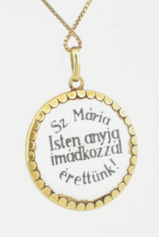 Leírás: Arany (Au) 14 K venezianer nyaklánc Szűz Mária medállal, jelzett, h: 36,5 cm, bruttó: 4 g