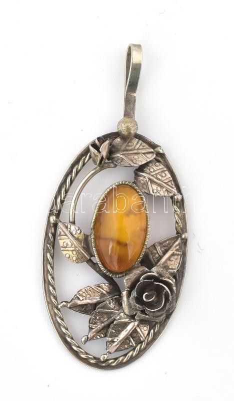 Ezüst (Ag) bross, borostyán berakással, jelzett, m: 5,5 cm, bruttó: 5,... https://www.darabanth.com/hu/442-Gyorsarveres/442.0/Nemesfem-disztargyak-ekszerek-dragakovek/Nemesfem-disztargyak-ekszerek-dragakovek~1000029/Ezust-Ag-bross-borostyan-berakassal-jelzett-m-5-5-cm-brutto-5-3-g~II2907902