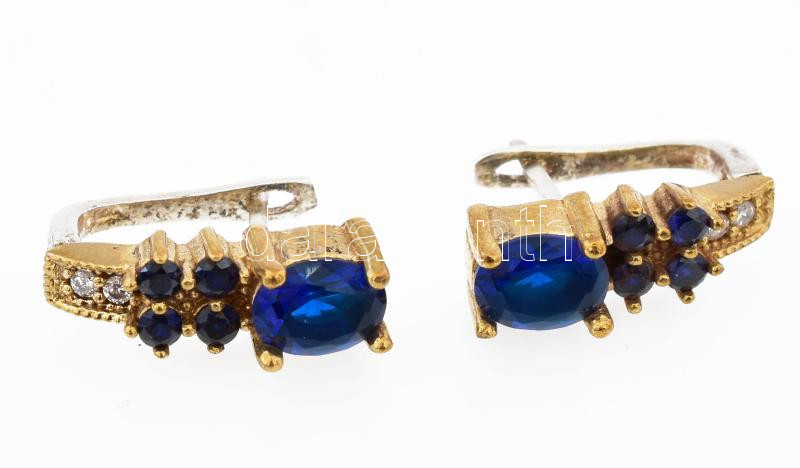 Leírás: Ezüst (Ag) fülbevalópár kék kövekkel, jelzet, h: 2,5 cm, bruttó: 8,59 g