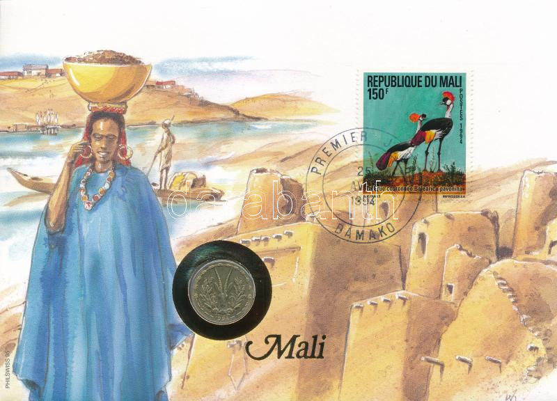 Mali felbélyegzett borítékban, bélyegzéssel, német nyelvű leírással, benne Nyugat Afrikai Államok 1994. 5Fr Al-Ni-Br T:AU Mali in envelope with stamp, cancellation and a prospectus in german, in it West African States 1994. 5 Francs Al-Ni-Br C:AU
