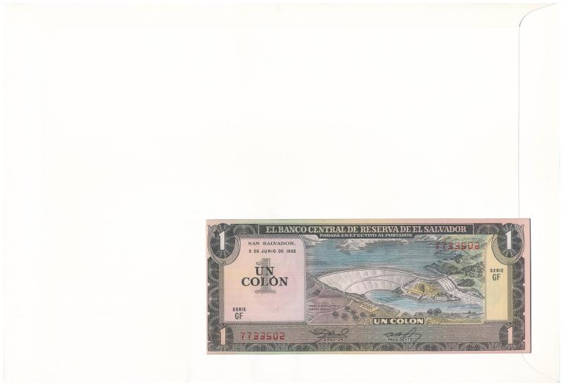 Salvador 1982. 1 Colón in envelope with stamp and cancellation C:UNC