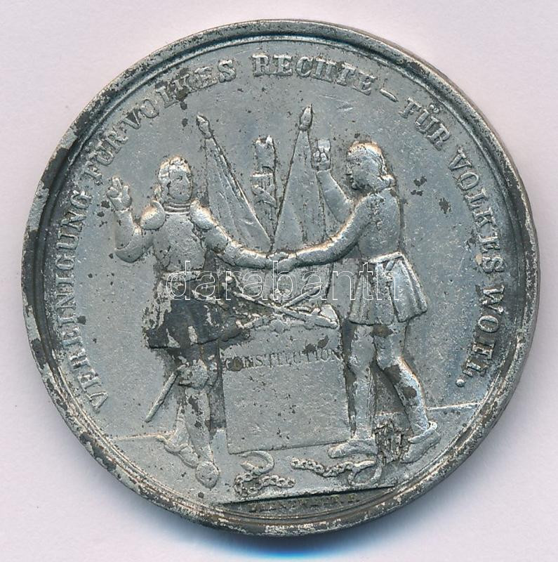 Ausztria 1849. "Alkotmány - Egyesület az emberek jogaiért, az emberek jólétéért / Ferenc József - Az egész osztrák monarchia újjászületése" Sn emlékérem. Szign.: Drentwett F. (37mm) T:VF patina
