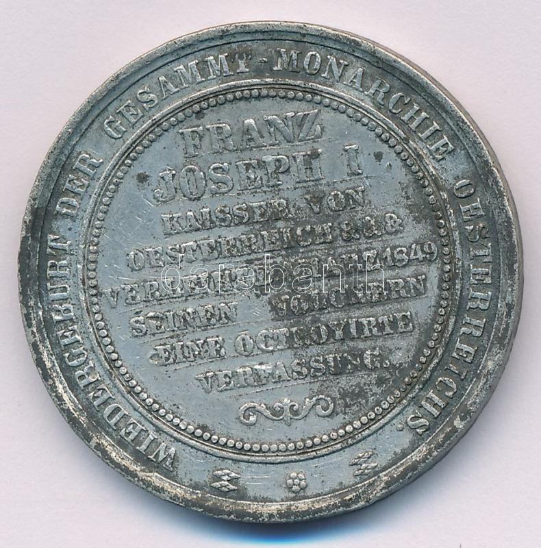 Austria 1849. "Constitution - Vereinigung für Volkes Rechte, für Volkes Wohl / Wiedergeburt der gesammt Monarchie Oesterreichs - Franz Joseph I Kaisser von Oesterreich & verleiht da Marz 1849 seinen völckern eine okcroyierte verfassung" Sn commemorative medallion. Sign.: Drentwett F. (37mm) C:VF patina