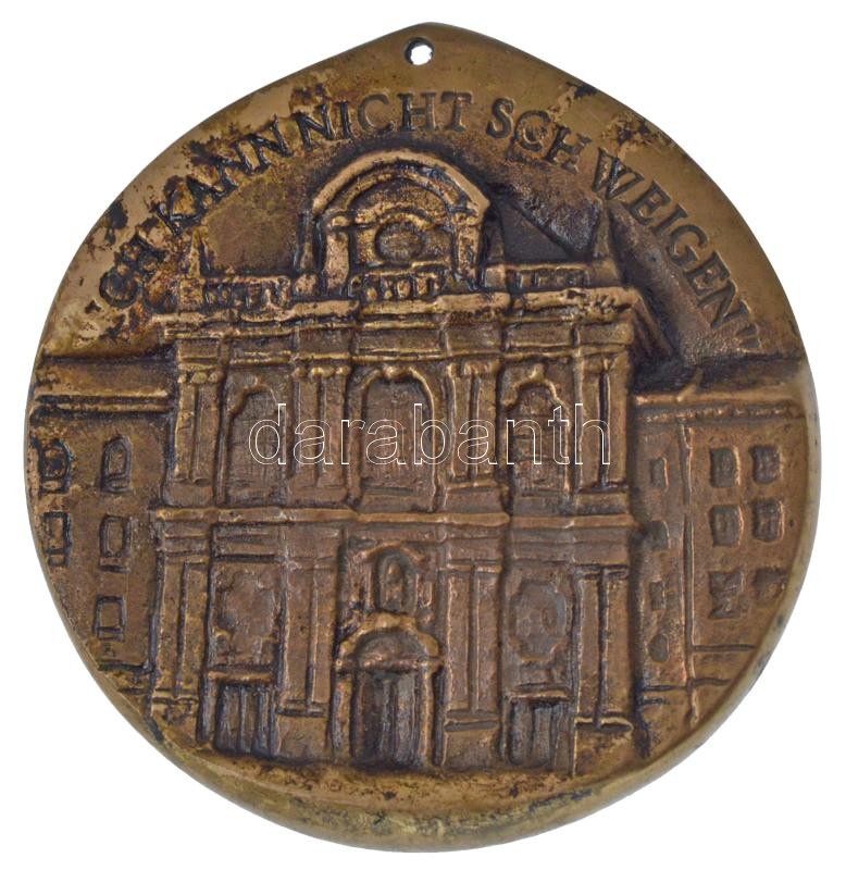 NSZK ~1980. "P. Rupert Mayer S.J. 1876-1945 / 'Ich Kann Nicht Schweigen' " jezsuita szerzetes bronz emlékplakettje, felső részén átfúrva. Szign.:N.K. (~80mm) T:XF patina