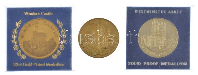 Nagy-Britannia DN "London" kétoldalas, aranyozott fém emlékérem műanyag kapszulában (38mm) + "Windsor kastély" aranyozott fém emlékérem eredeti műanyag tokban (38mm) + "Westminster apátság" kétoldalas fém emlékérem eredeti műanyag tokban (38mm) T:UNC,AU fo.