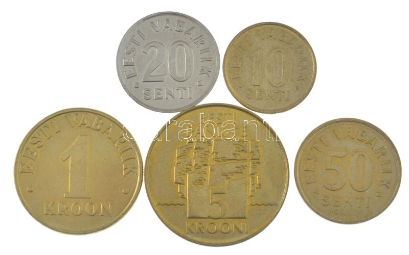 Estonia 1992-2003. 10 S... https://www.darabanth.com/hu/442-Gyorsarveres/442.0/Numizmatika/Kulfoldi-fem-es-ezustpenzek~1500015/Esztorszag-1992-2003-10s-5K-5xklf-TUNC-AU-Estonia-1992-2003-10-Senti-5-Krooni-5xdiff-CU~II2907596
