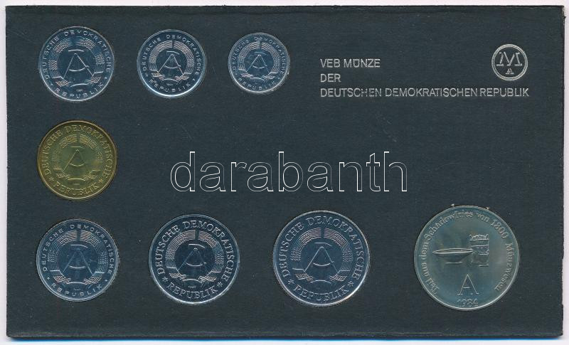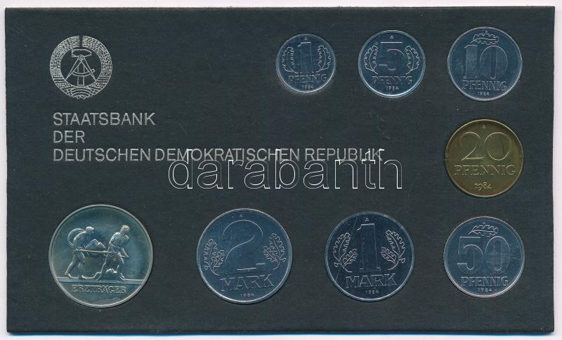 GDR 1984. 1 Pfennig - 2 Mark (7xdiff) coin set + mint token in plastic case C:UNC