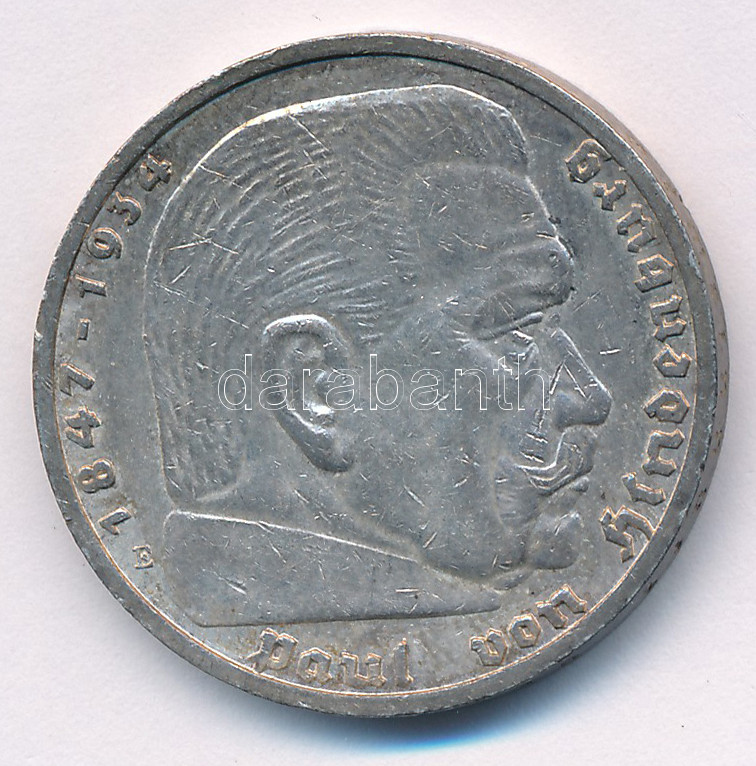... https://www.darabanth.com/hu/442-Gyorsarveres/442.0/Numizmatika/Kulfoldi-fem-es-ezustpenzek~1500015/Nemet-Harmadik-Birodalom-1937E-5M-Ag-Hindenburg-TXF-ph--German-Third-Reich-1937E-5-Reichsmark-~II2907237
