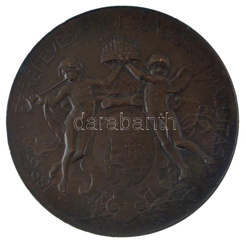 Beck Ötvös Fülöp (1873-1945) 1896. "1896-iki EZREDÉVES ORSZÁGOS KIÁLLÍTÁS / KIÁLLÍTÁSI ÉREM AZ ÉRDEM JUTALMÁUL" bronz emlékérem, adományozva Hollósi Albertnek (Budapest) (70mm) T:XF ph, kis karc
