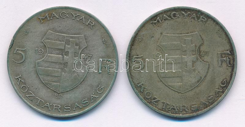 Leírás: 1947. 5Ft Ag "Kossuth" (2x) T:VF,F patina