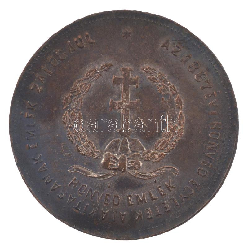 1867. "Honvéd Emlék - Az 1867. évi honvéd egyletek alakításának emlék zálogául / Éljen a haza és az alkotmány" kétoldalas, eredetileg ezüstözött bronz emlékérem (38mm) T:XF patina, szinte teljesen lekopott ezüstözés, ph.