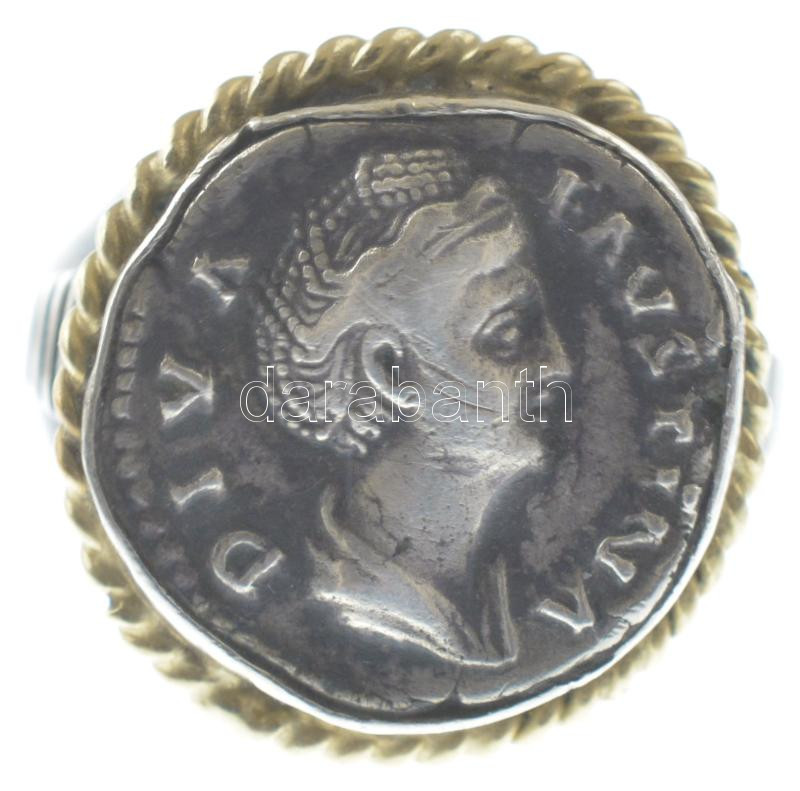 Római Birodalom / Róma / I. vagy II. Faustina ~175. Denarius Ag modern, jelzett Ag és 14K Au gyűrűbe foglalva (br.14,32g) T:XF patina