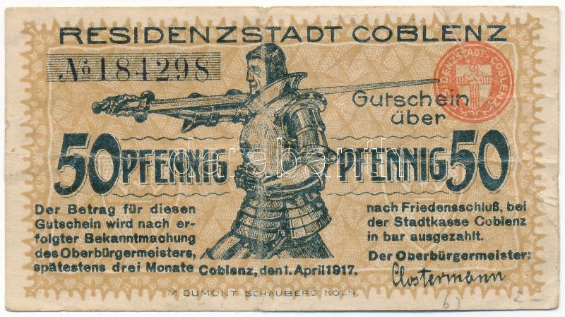 Germany / ... https://www.darabanth.com/hu/442-Gyorsarveres/442.0/Numizmatika/Papir-es-fem-szuksegpenzek~1500006/Nemetorszag-Weimari-Koztarsasag-Koblenz-1917-50pf-TF-Germany-Weimar-Republic-Koblenz~II2910002