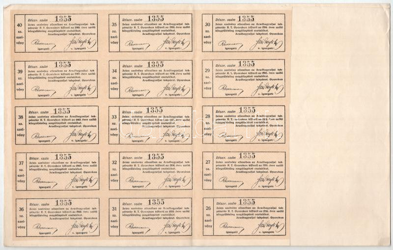 Leírás: Appony 1914. "Appony-Kovarczi Mezőgazdasági és Szeszipari Részvénytársaság" részvénye 200K-ról, sorszám nélkül, szelvényekkel és szárazpecséttel T:AU