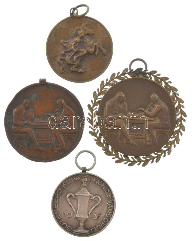 Leírás: 1928-1938. 4xklf bronz sakk díjérem T:XF,VF