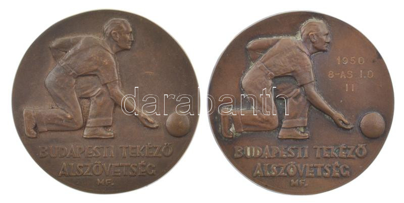 Leírás: 1950. "Budapesti Tekéző Alszövetség" egyoldalas öntött bronz emlékérem, (2db, egyik gravírozással). Szign.: MF (78mm) T:AU egyiken ph.