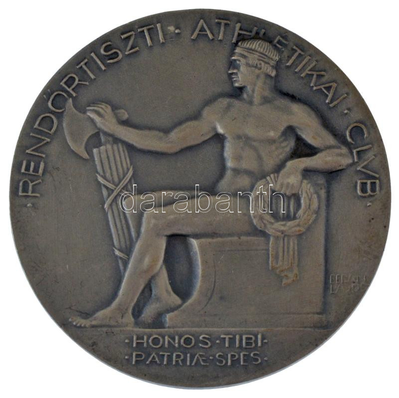 Leírás: Berán Lajos (1882-1943), Berán Nándor (1889-1965) 1934. "Rendőrtiszti Athlétikai Club - Honos Tibi Patriae Spes" ezüstözött bronz sportérem, hátoldalán "BERÁN N BPEST" és "BN" beütővel, gravírozott felirattal (51mm) T:AU