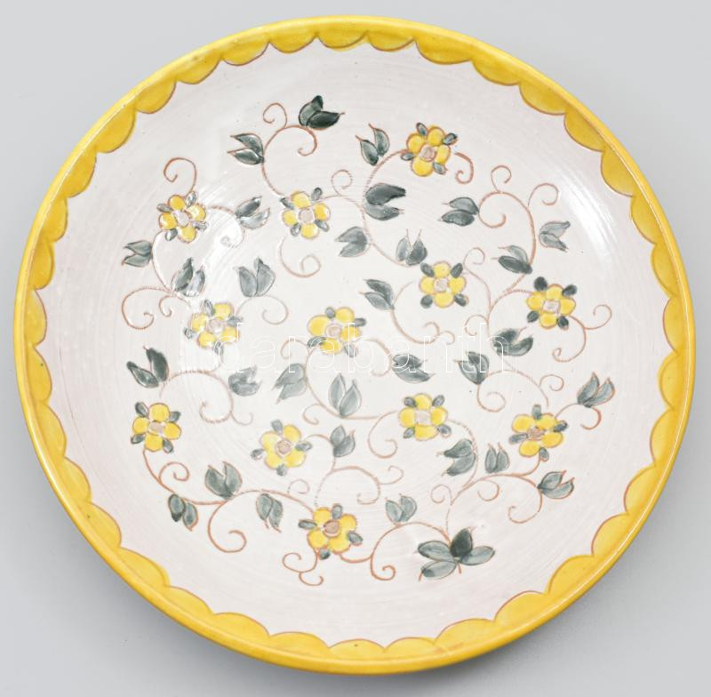 Iparművészeti vállalat sárga virágmintás falitál, jelzett, hibátlan, d... https://www.darabanth.com/hu/442-Gyorsarveres/442.0/Porcelan-keramia-uveg/Keramiak~500005/Iparmuveszeti-vallalat-sarga-viragmintas-falital-jelzett-hibatlan-d-22-5-cm~II2913236