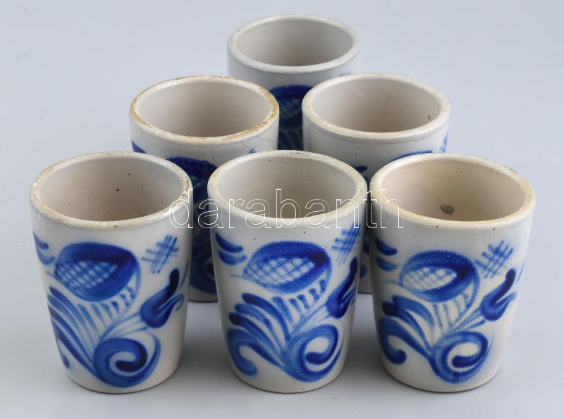 Leírás: Kézzel festett német kőedény pohár szett, gyári tűzhibákkal, 6 darab, m: 9,5 cm