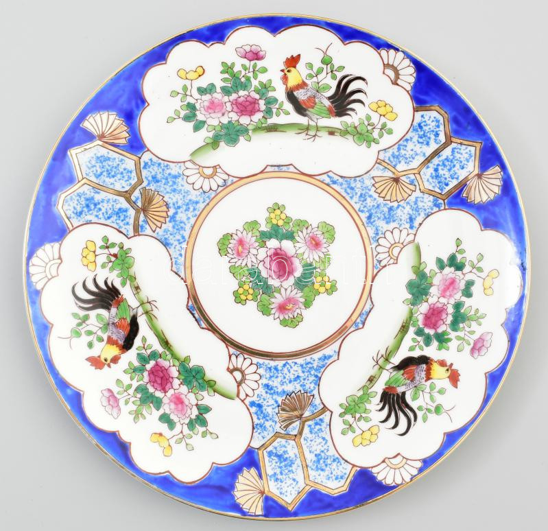 Leírás: Familie Rose kakasmintás tányér, jelzés nélkül, kézzel festett, hibátlan, d: 26 cm