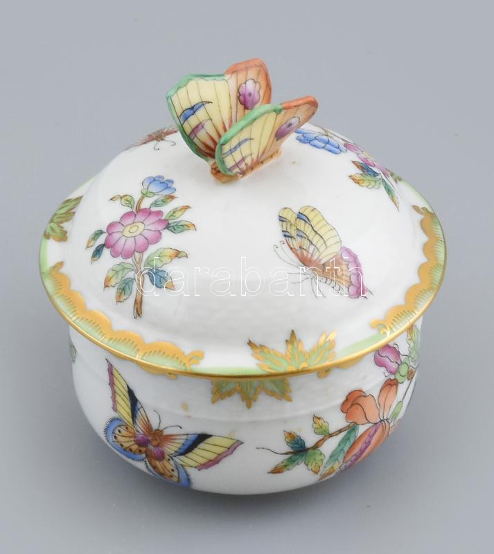 Herendi Viktória mintás bonbonier, kézzel festett, jelzett, alja ragas... https://www.darabanth.com/hu/442-Gyorsarveres/442.0/Porcelan-keramia-uveg/Porcelan~500006/Herendi-Viktoria-mintas-bonbonier-kezzel-festett-jelzett-alja-ragasztott-fedele-hibatlan-m~II2908571