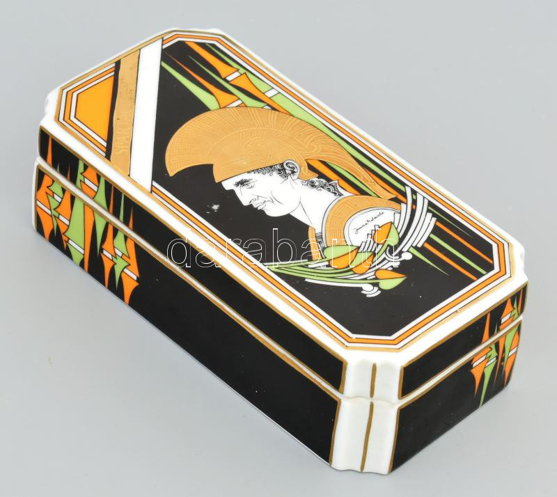 Leírás: Hollóházi Spartacus bonbonier, terv.: Jurcsák, jelzett, matricás, minimális kopottsággal, 15x7,5 cm