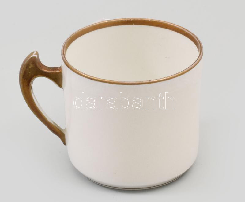 Leírás: Hüttl csésze. Aranyozott és dombormintás díszítéssel, jelzett, kis kopással, m: 5 cm