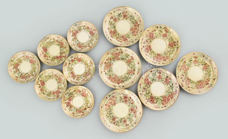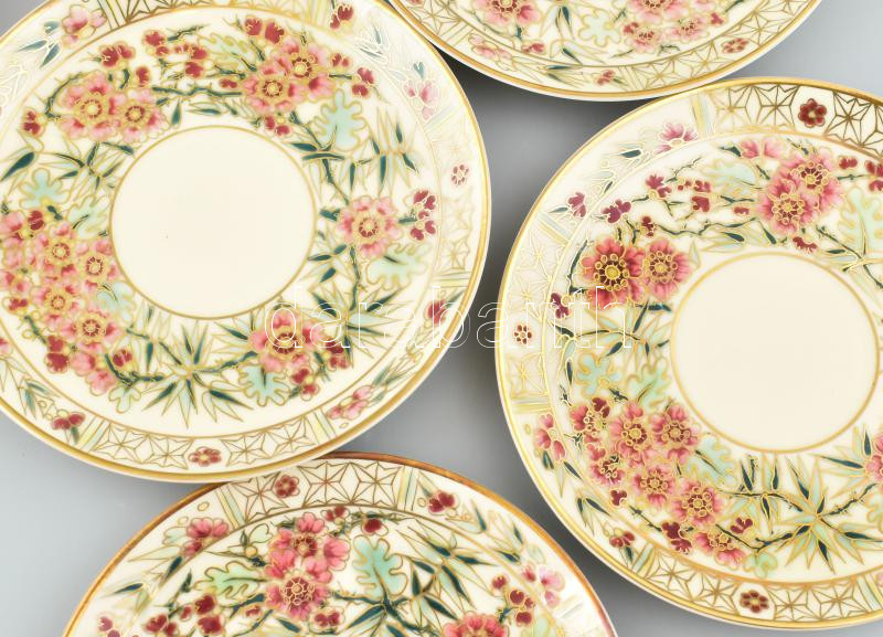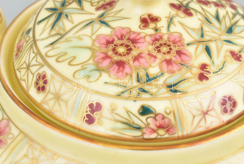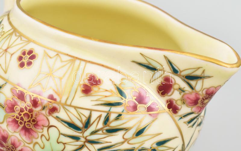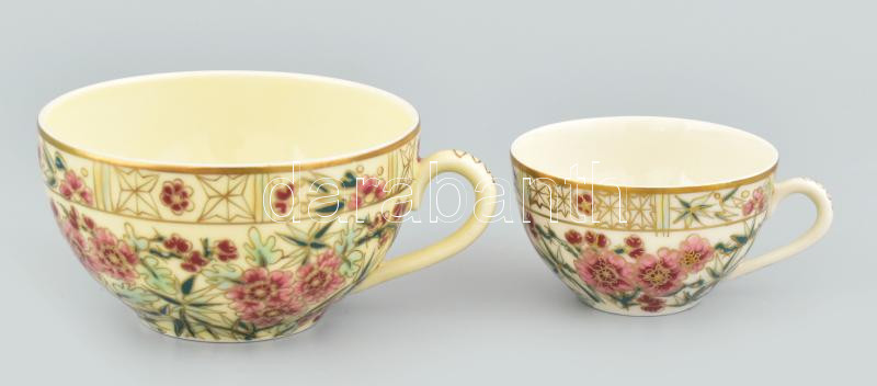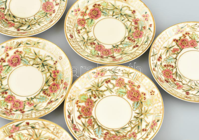 Leírás: Zsolnay bambusz mintás teás és kávés készlet. 6+6 személyes, egy kannával. Kézzel festett, jelzett, hibátlan