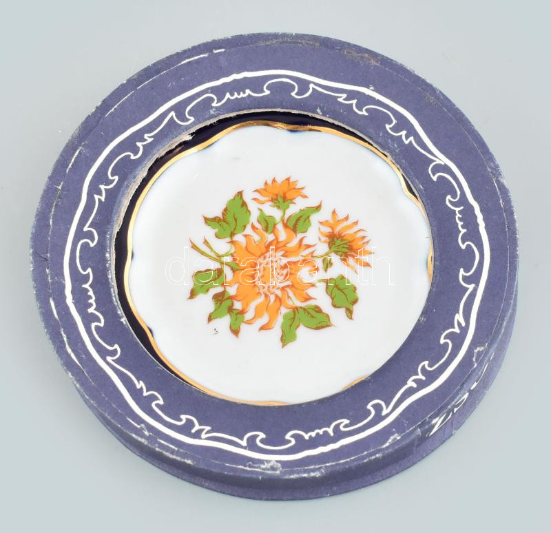 Leírás: Zsolnay porcelán tányérka Kézzel festett, jelzett, hibátlan , eredeti csomagolásban d: 9 cm