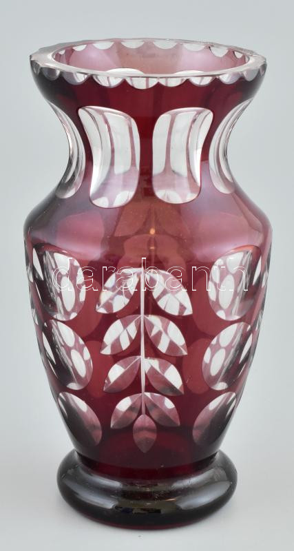 Leírás: Bordó kristály váza, kopásokkal, m: 19 cm