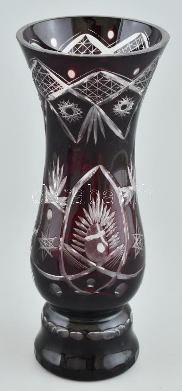 Leírás: Bordó kristály váza, kopásokkal, m: 30,5 cm