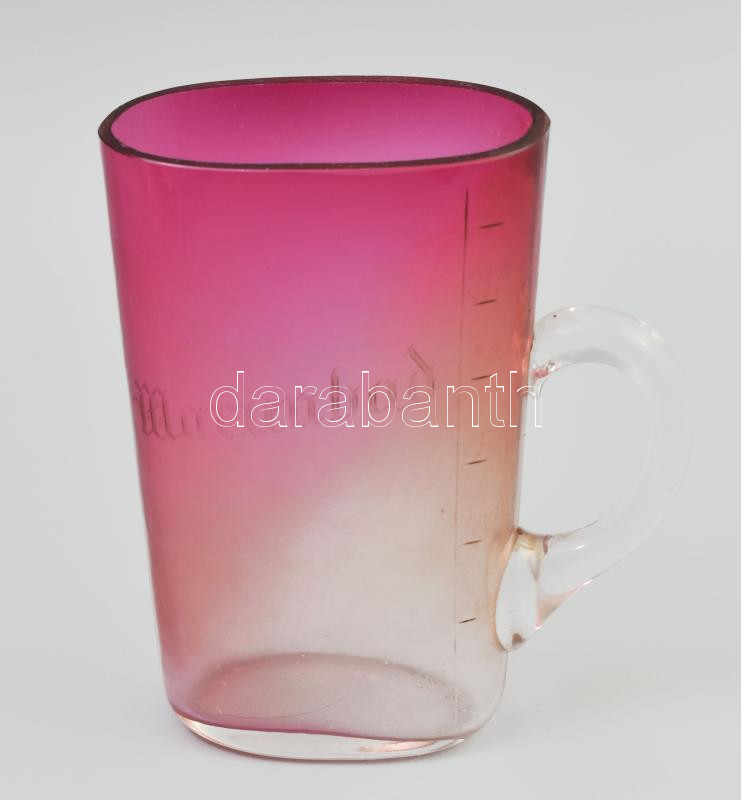 Leírás: Marienbad Kúrapohár. Csiszolt üveg, anyagában színezett, XIX. sz. vége, hibátlan 14 cm
