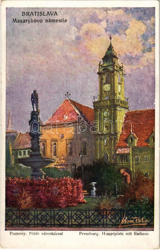 Leírás: Pozsony, Pressburg, Bratislava; Fő tér, Városháza / Hauptplatz mit Rathaus / main square, town hall. B.K.W.I. 386-10. s: Marx Béla (EK)