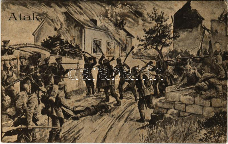 Atak / Polish-German military, attack. A.J. Ostrowski, Lódz (fl) https://www.darabanth.com/hu/443-Gyorsarveres/443.0/Kepeslapok/Katonai~2000032/Atak-Polish-German-military-attack-AJ-Ostrowski-Lodz-fl~II2918767
