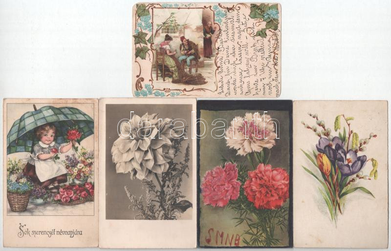 Leírás: 20 db RÉGI üdvözlő képeslap vegyes minőségben / 20 pre-1945 greeting postcards in mixed quality
