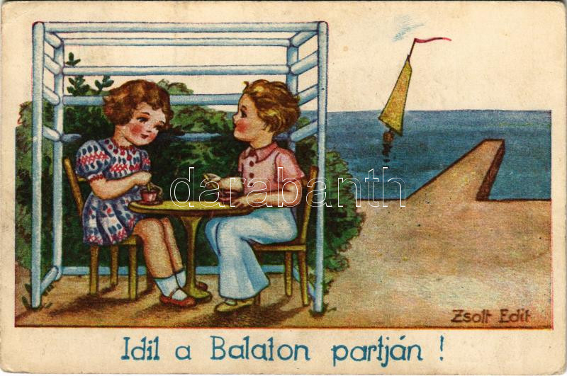 1946 Balaton, Idil a Balaton partján! s: Zsolt Edit (EK) https://www.darabanth.com/hu/443-Gyorsarveres/443.0/Kepeslapok/Magyarorszag~2000005/1946-Balaton-Idil-a-Balaton-partjan-s-Zsolt-Edit-EK~II2917921