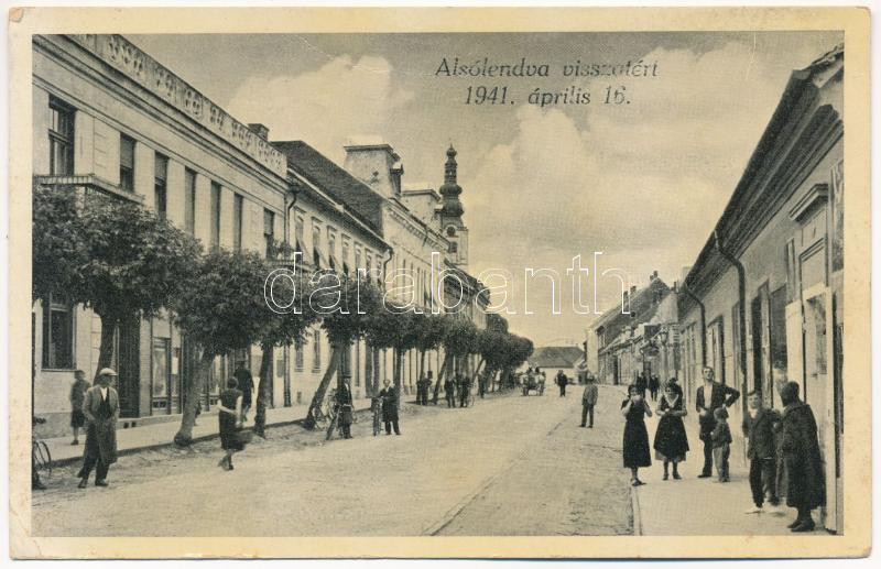 1941 Alsólendva, Alsó-Lendva, Dolnja Lendava; Visszatért 1941. április... https://www.darabanth.com/hu/443-Gyorsarveres/443.0/Kepeslapok/Murakoz-Muravidek~2000012/1941-Alsolendva-Also-Lendva-Dolnja-Lendava-Visszatert-1941-aprilis-16-utca-Marica-Sever-k~II2925293