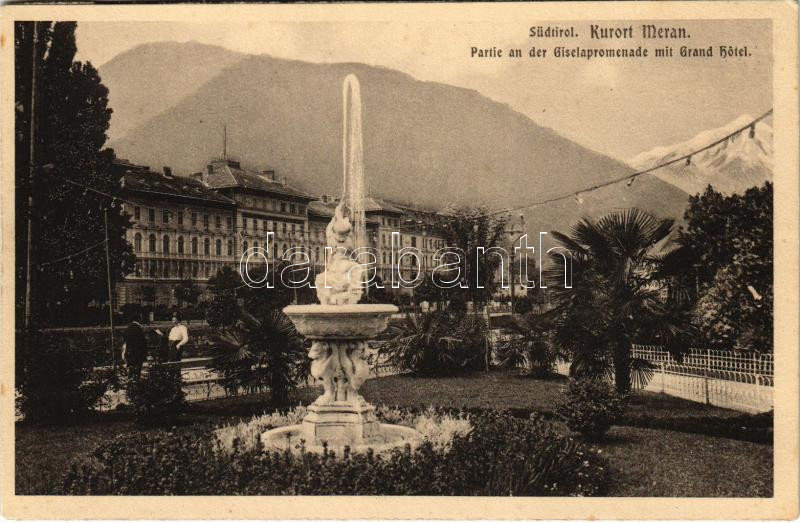 Merano, Meran (Südtirol); Partie an der Giselapromenade mit Grand Hote... https://www.darabanth.com/hu/443-Gyorsarveres/443.0/Kepeslapok/Olaszorszag~2000088/Merano-Meran-Sudtirol-Partie-an-der-Giselapromenade-mit-Grand-Hotel-from-postcard-booklet~II2900869