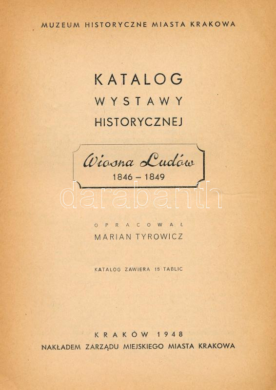 Marian Tyrowicz: Katalog Wystawy Historycznej. Wiosna Ludów 1846-1849. (A történelmi kiállítás katalógusa. A nemzetek tavasza 1846-1849.) Muzeum Historyczne Miasta Krakowa. Kraków, 1948, Nakladem Zarzadu Miejskiego Miasta Krakowa. Lengyel nyelven.
