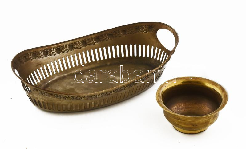 Leírás: 2 réz kínáló tálca 28 cm, edényke 10 cm