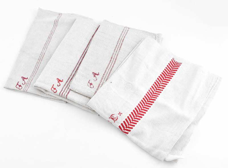 Leírás: 4 db régi vászon törülköző, monogramos hímzéssel