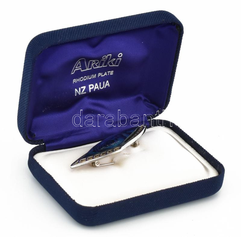 Leírás: Ariki, paua kagyló csiszolt gyöngyház medál, díszdobozban, jelzéssel, h: 5,5 cm