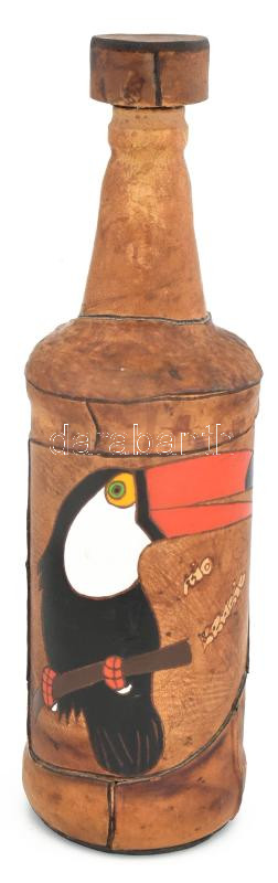 Leírás: Dél Amerikai bőr borítású üveg. Madaras 33 cm