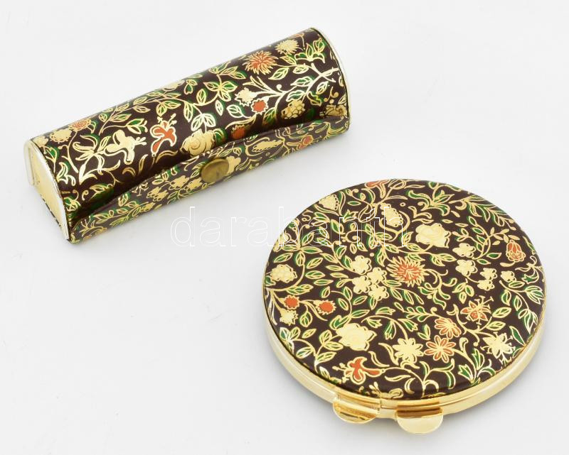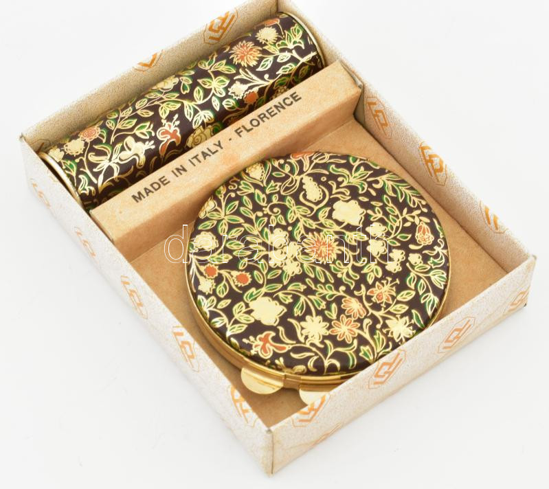 Leírás: Florence olasz púdertartó és rúzstartó, kopásokkal, díszdobozban